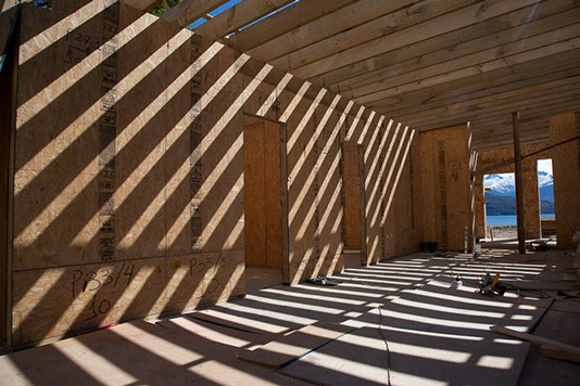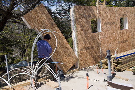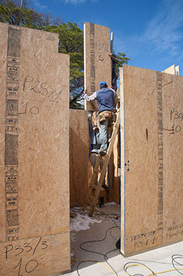 Rafters, sill plates & panels, ready to go . . . vigas, planchas y sobre todo, los paneles.