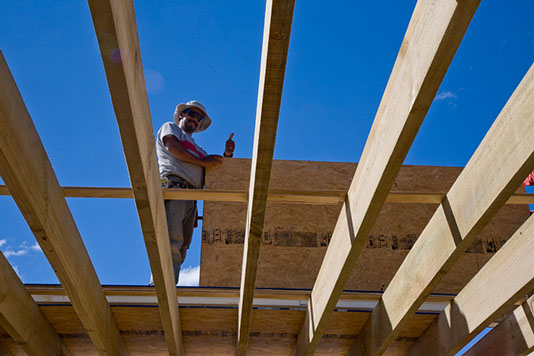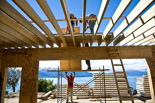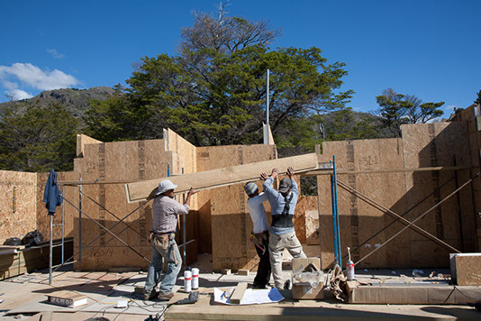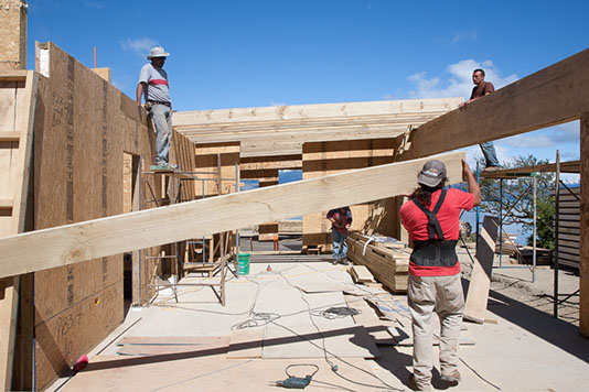 It's beginnng to look like a house . . . La forma de una casa empieza a distinguirse.