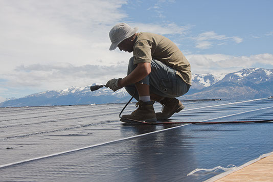 Blocking the sky with roof panels . . . El cielo desaparece.